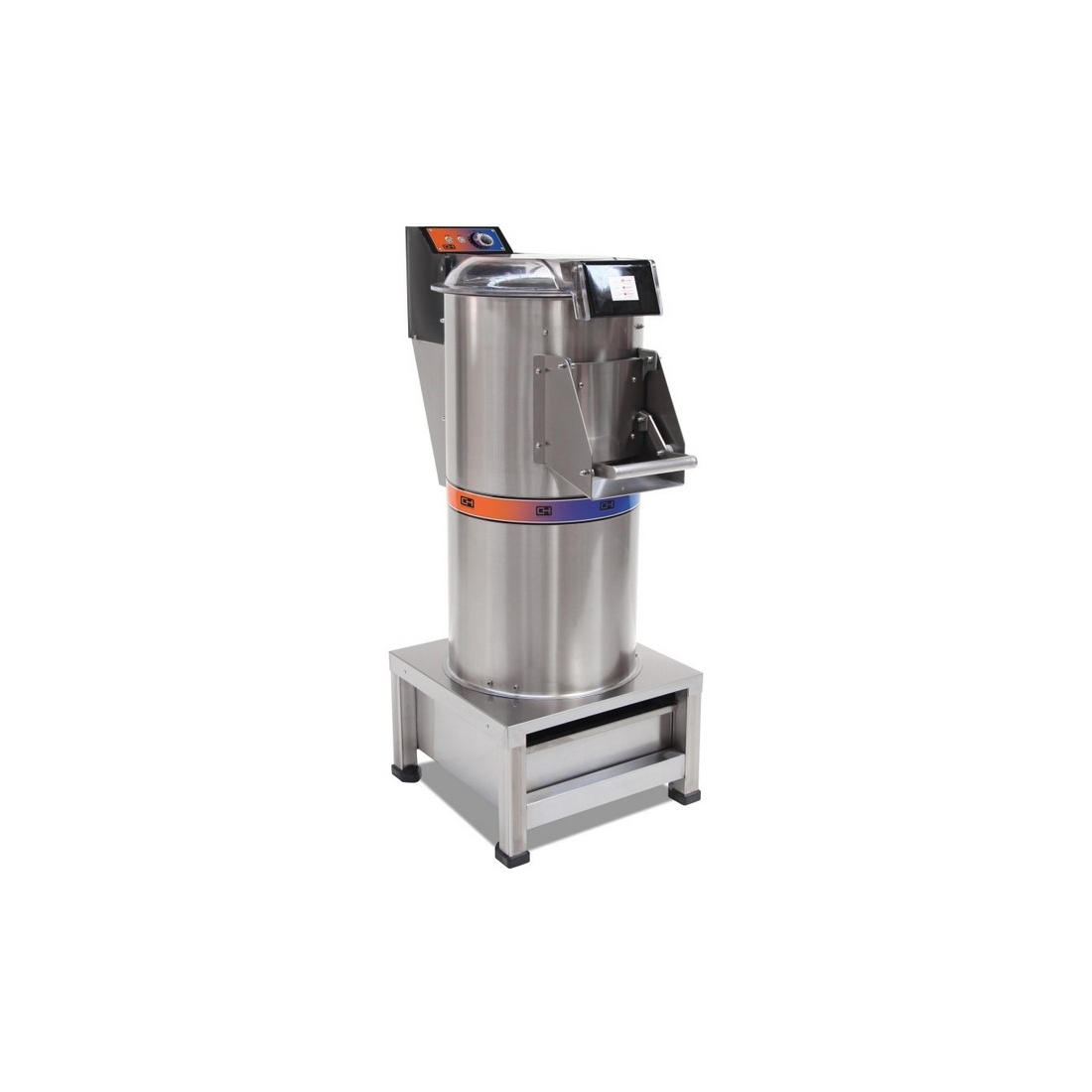 - El proceso de pelado se produce gracias a la fricción del producto sobre las paredes abrasivas de la cuba debido al centrifugado del mismo.