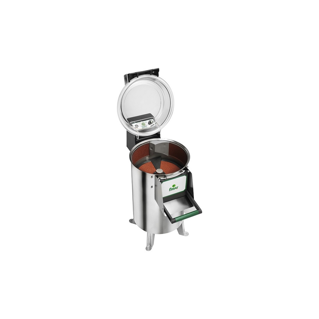 Descubre esta máquina para pelar patatas de Fimar. Fabricada en acero inoxidable AISI 304, con capacidad de 18 kg y producción de 220 kg/h, con tapa transparente, temporizador y seguridad avanzada.