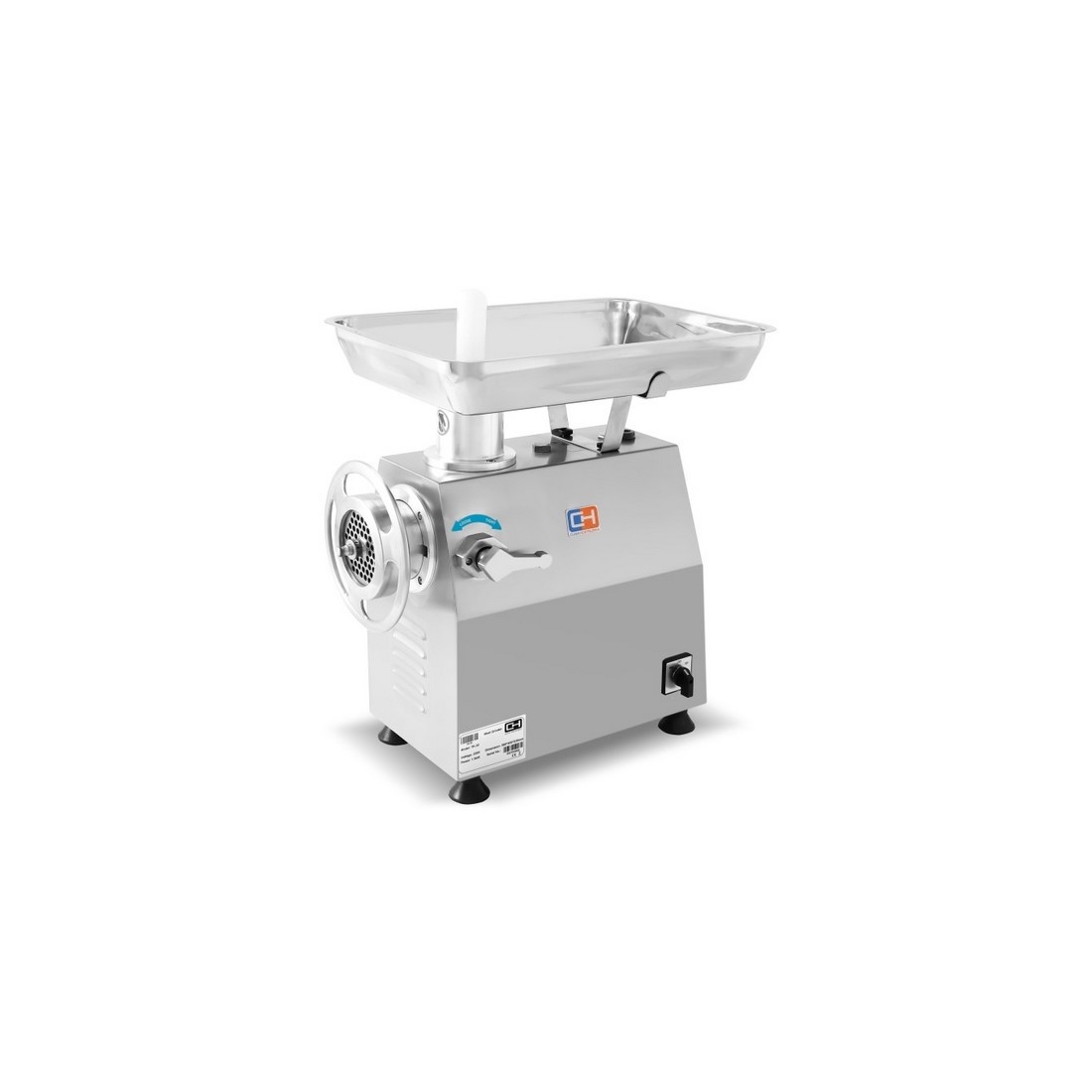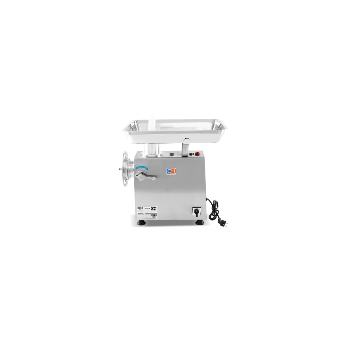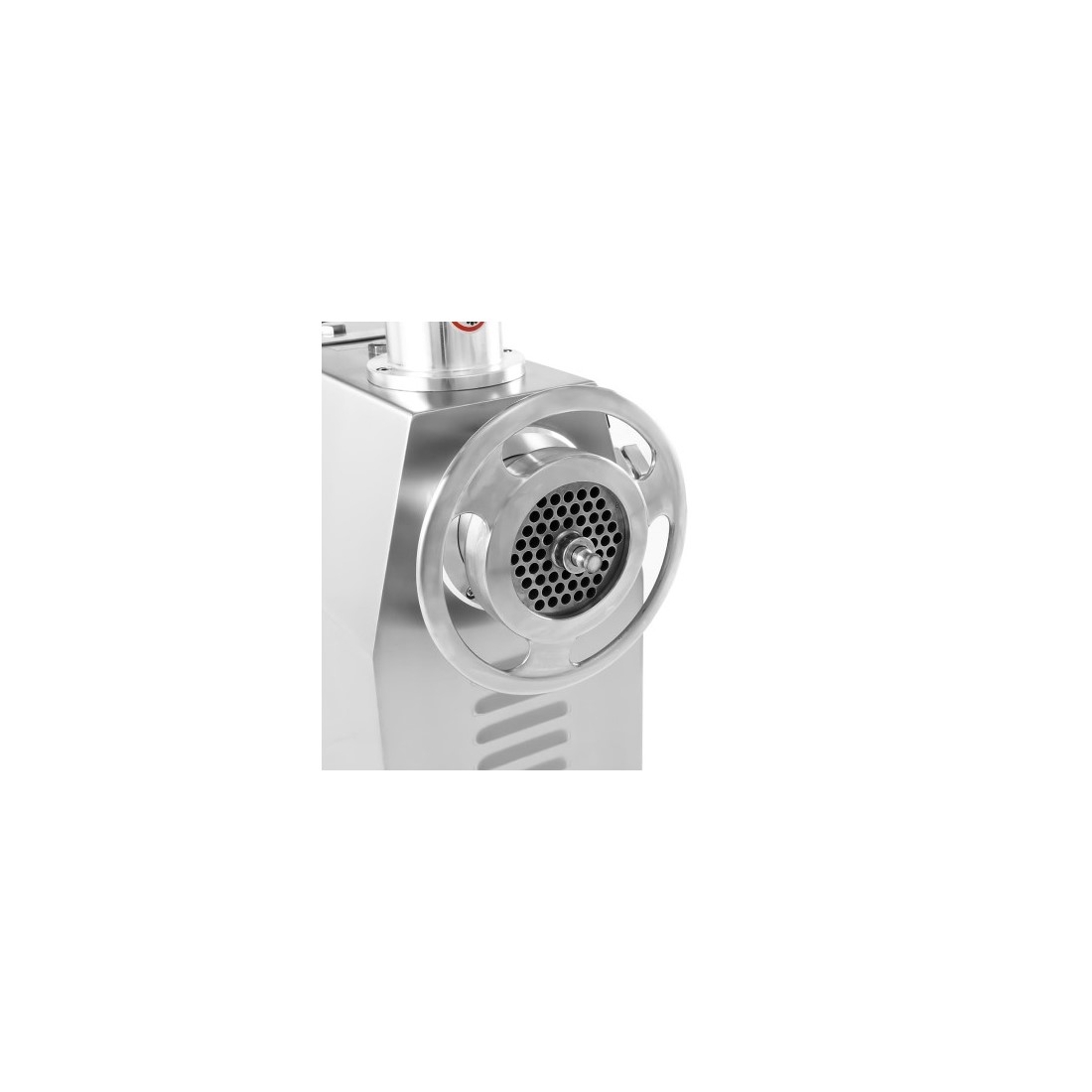 Picadora de carne industrial con boca de 32mm. Tiene una capacidad de producción de hasta 250 Kg/hora y cuenta con una potencia de 1500W. Todas las piezas en contacto con el alimento están fabricadas en acero inoxidable.