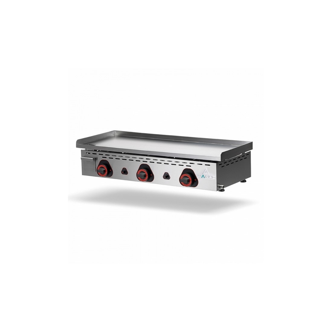 Plancha industrial a gas de 90cm fabricada en España por la marca Mainho, presenta una placa de cromo duro de más de 60 micras y 12 mm de espesor para garantizar una distribución homogénea del calor. El encendido piezoeléctrico y las válvulas termostáticas ofrecen un control preciso de la temperatura. Potencia de 12,7 kw y 10.922 Kcal/h.