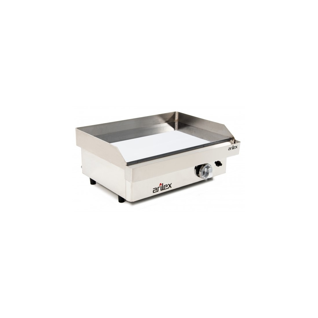 Plancha de asar a gas, con una potencia de 6kw está fabricada en acero rectificado con protección anti oxidación y 15mm de espesor. El peto trasero es de 80mm. Tiene un quemador diseñado por Arilex sin "Zonas Frías" con salida de llama por todo el perímetro de la placa que nos asegura un reparto uniforme de calor.