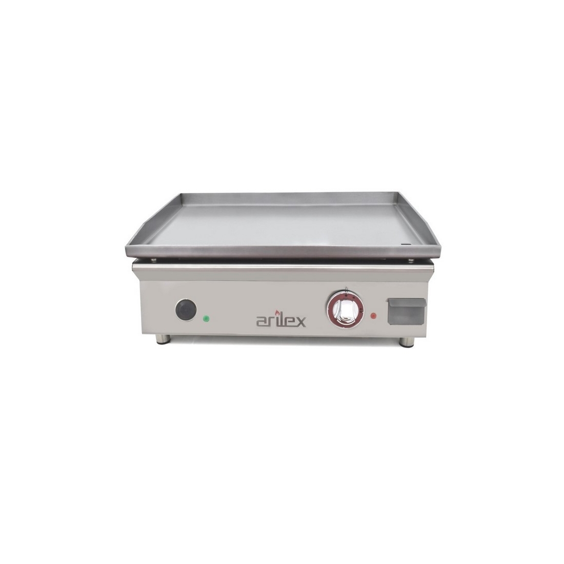 Plancha Cocina Industrial Eléctrica 60cm 60PLN de Arilex, construida en acero rectificado con tratamiento anti oxidación y 15 mm de espesor del plato . Este modelo de plancha eléctrica de asar, está equipada con resistencias italianas de alta potencia de acero inox con recubrimiento INCOLOY y termostato de gran calidad CAMPINI. Los mandos son de baquelita cromada y grasera frontal de fácil limpieza y gran capacidad.