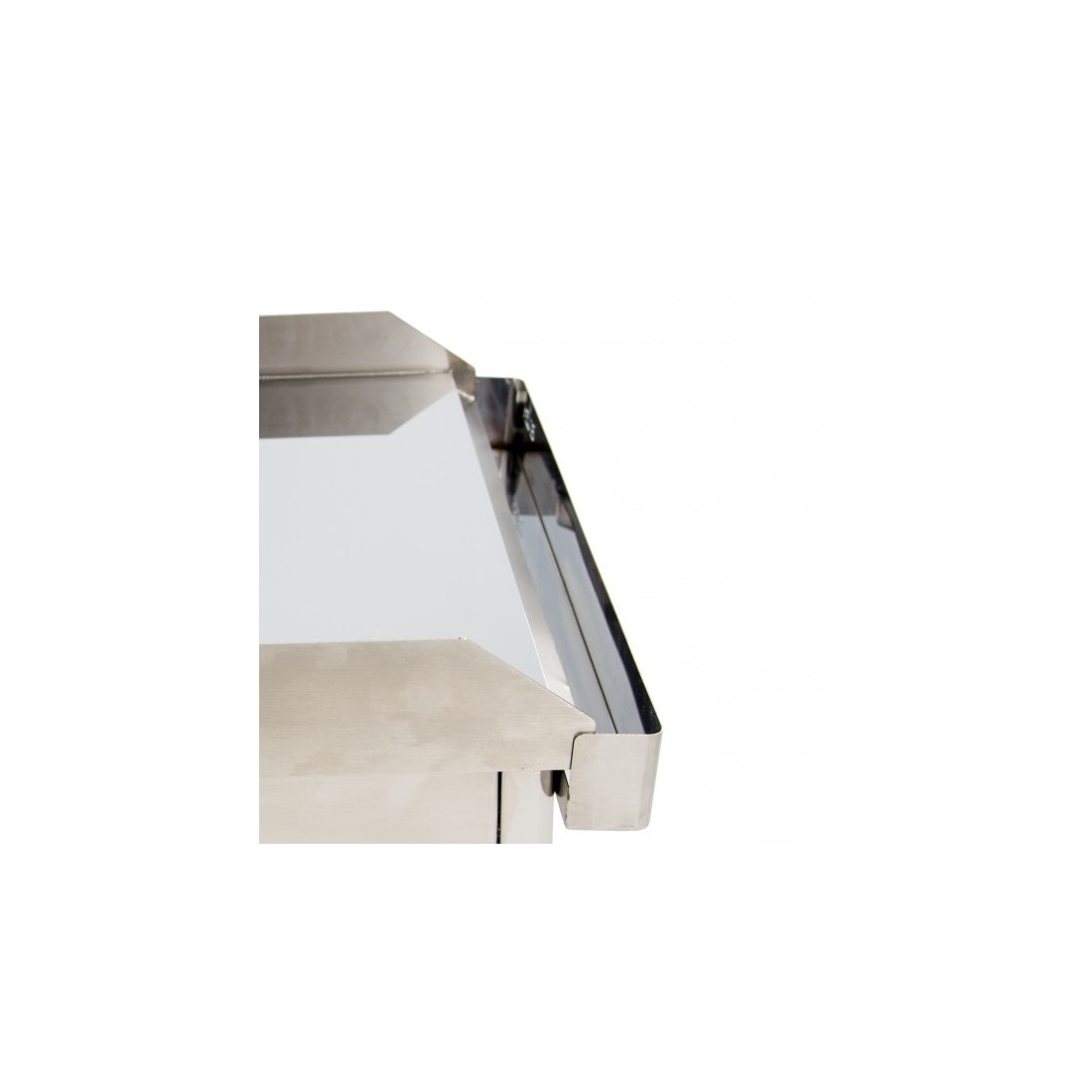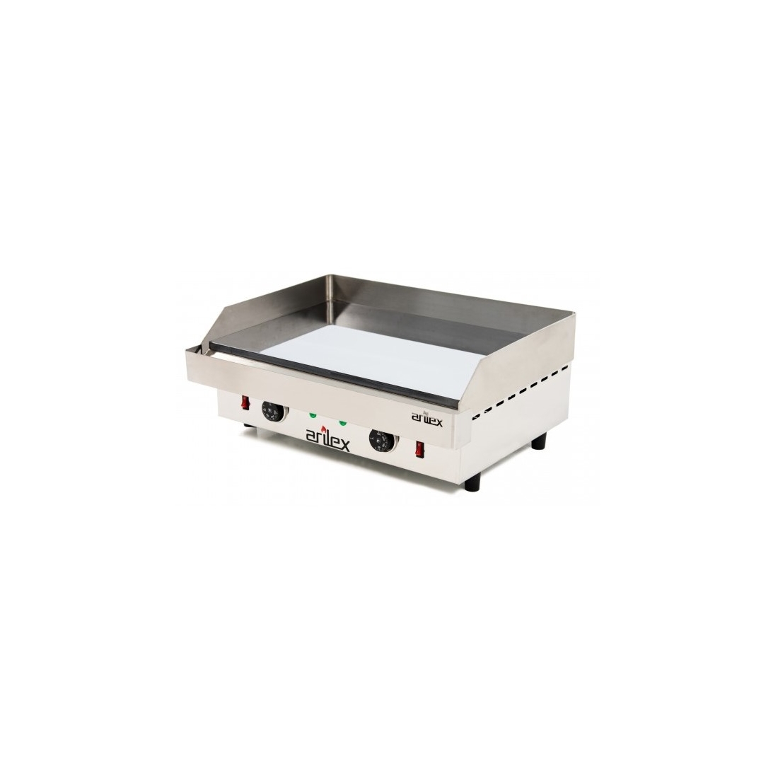 Plancha de asar eléctrica, con placa de acero con baño de cromo duro de 50 micras y 15mm de espesor. Está equipada con resistencias italianas de alta potencia de acero inox con recubrimiento INCOLOY y con termostato de gran calidad CAMPINI. El peto posterior es 80mm de altura.