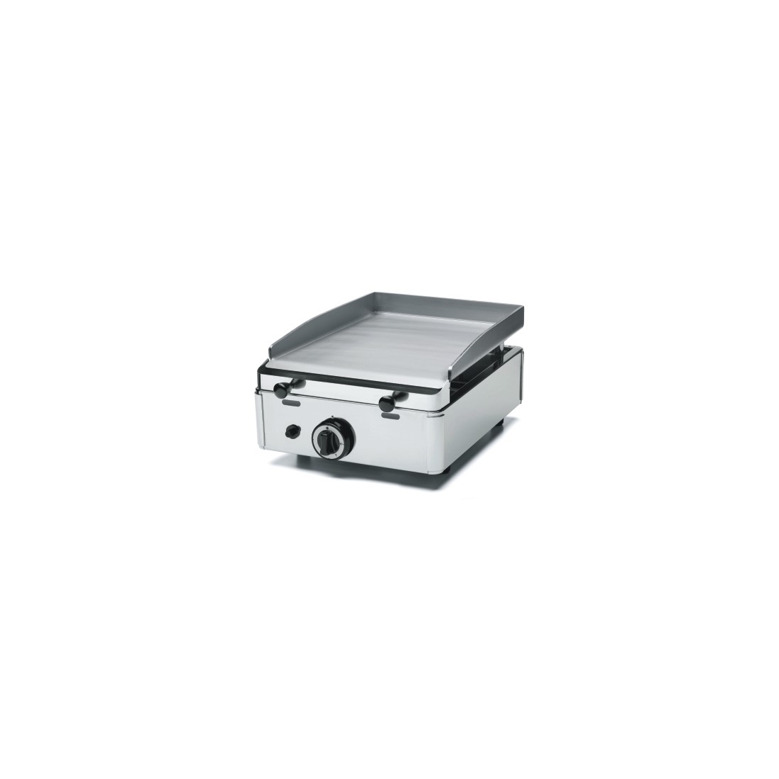 Plancha profesional de fabricación Italiana con un quemador y 3100W de potencia. Cuenta con termopar de seguridad y encendido piezo eléctrico. Disponible en 1, 2 y tres quemadores.