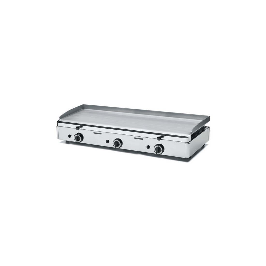 Plancha profesional de fabricación Italiana con tres quemadores y 9300W de potencia. Cuenta con termopar de seguridad y encendido piezo eléctrico. Disponible en 1, 2 y 3 quemadores.