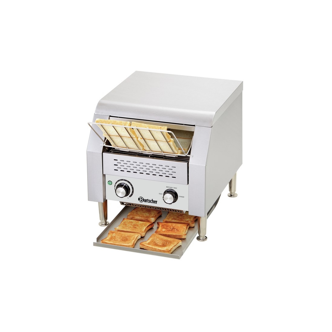 Tostadora de Cinta Pequeña A100205 Bartscher, ideal para la preparación de tostadas para el desayuno o autoservicio, tanto en restaurantes como en cafés, buffet, hoteles, albergues y panaderías.