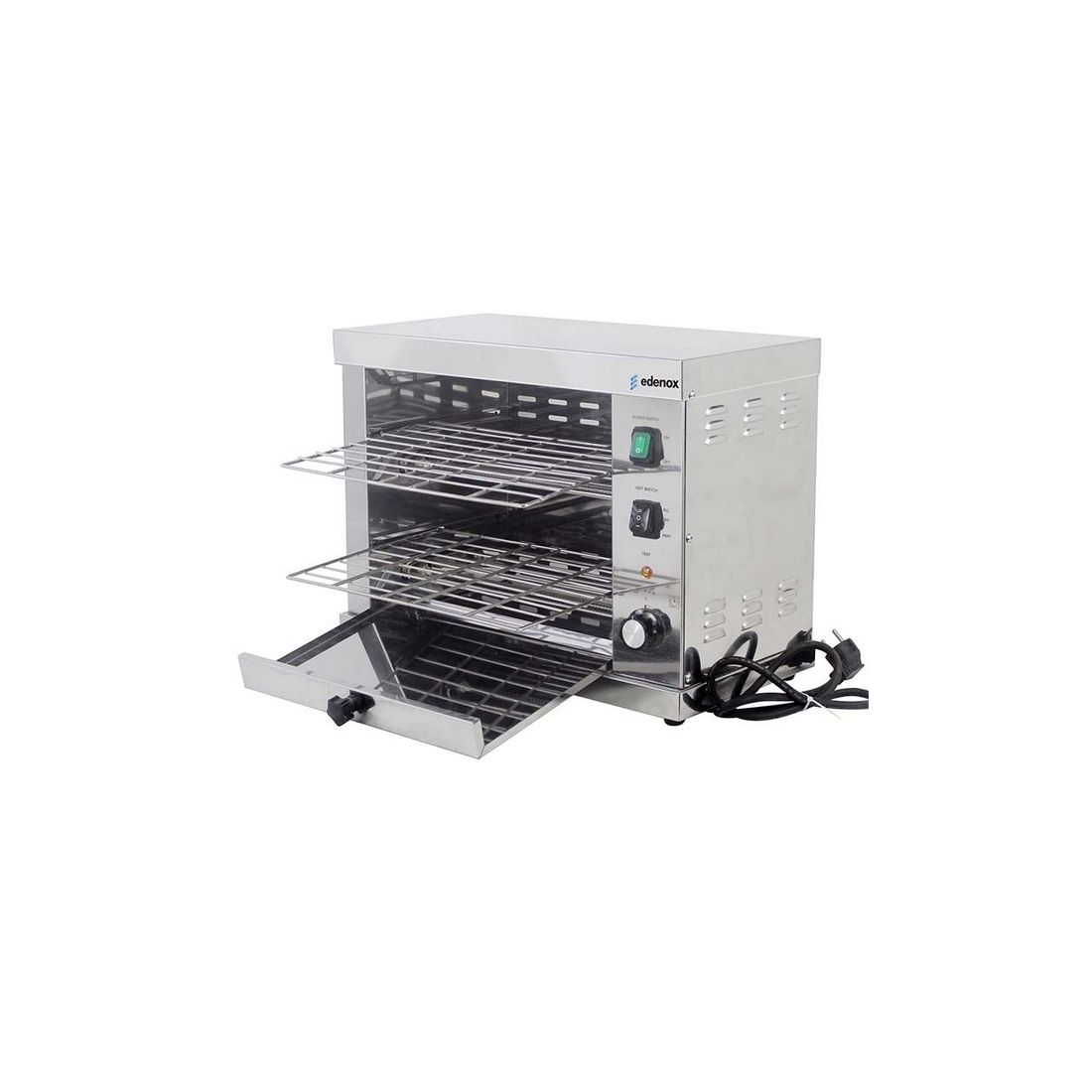 - Tostadora de pan profesional, para obtener un tueste del pan con la simple ubicación de las rebanadas de pan sobre las parillas. Por su diseño permite una alta capacidad y un rápido tostado. Ideal para bares, gastrobares, restaurantes, y cualquier local de restauración que quiera servir desayunos, tostadas para acompañamientos de embutidos, delicatesen, etc.