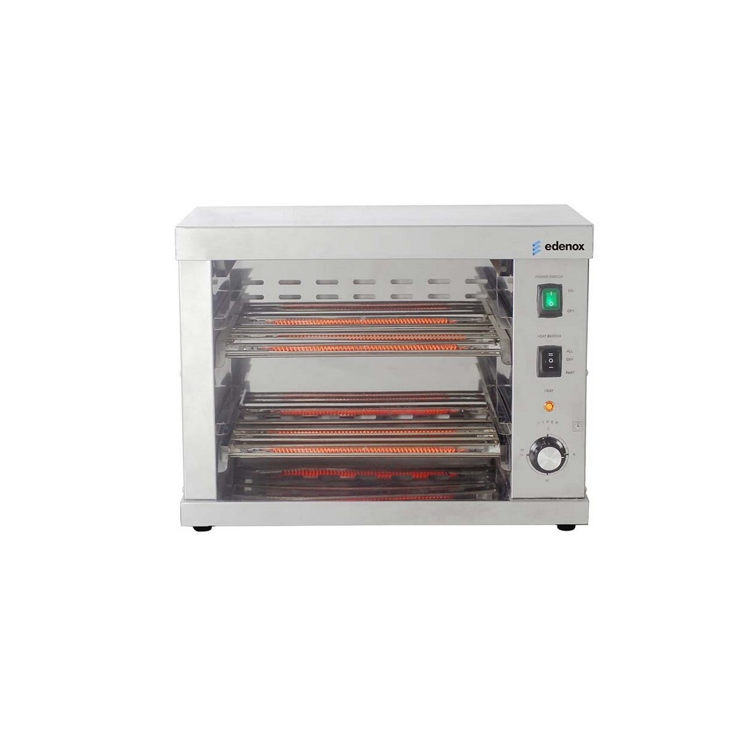 - Resistencias eléctricas de cuarzo, distribuidas en 3 niveles para un tostado completo. Están protegidas por las propias parrillas. Distancia entre parrillas es de 120mm