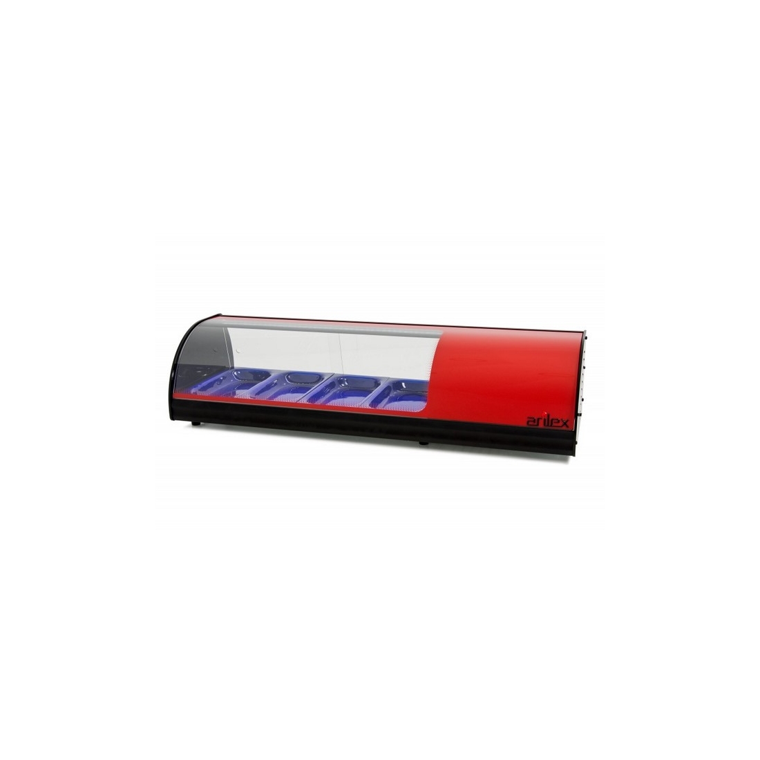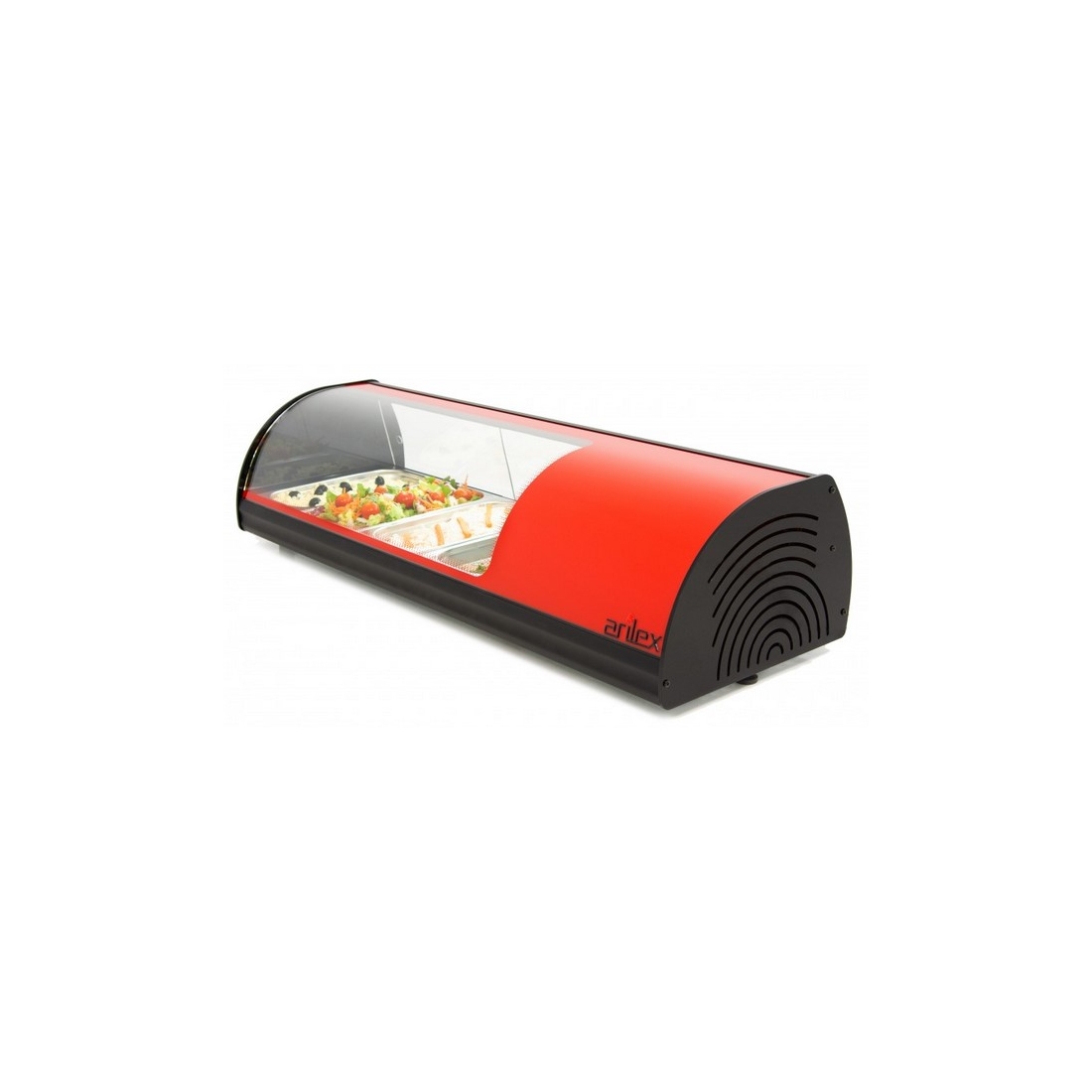 Vitrina de Tapas 4VTGRO de Arilex, con capacidad para cuatro cubetas GN 1/3-40 y un rango de temperatura +2 / +6ºC. Color Rojo.