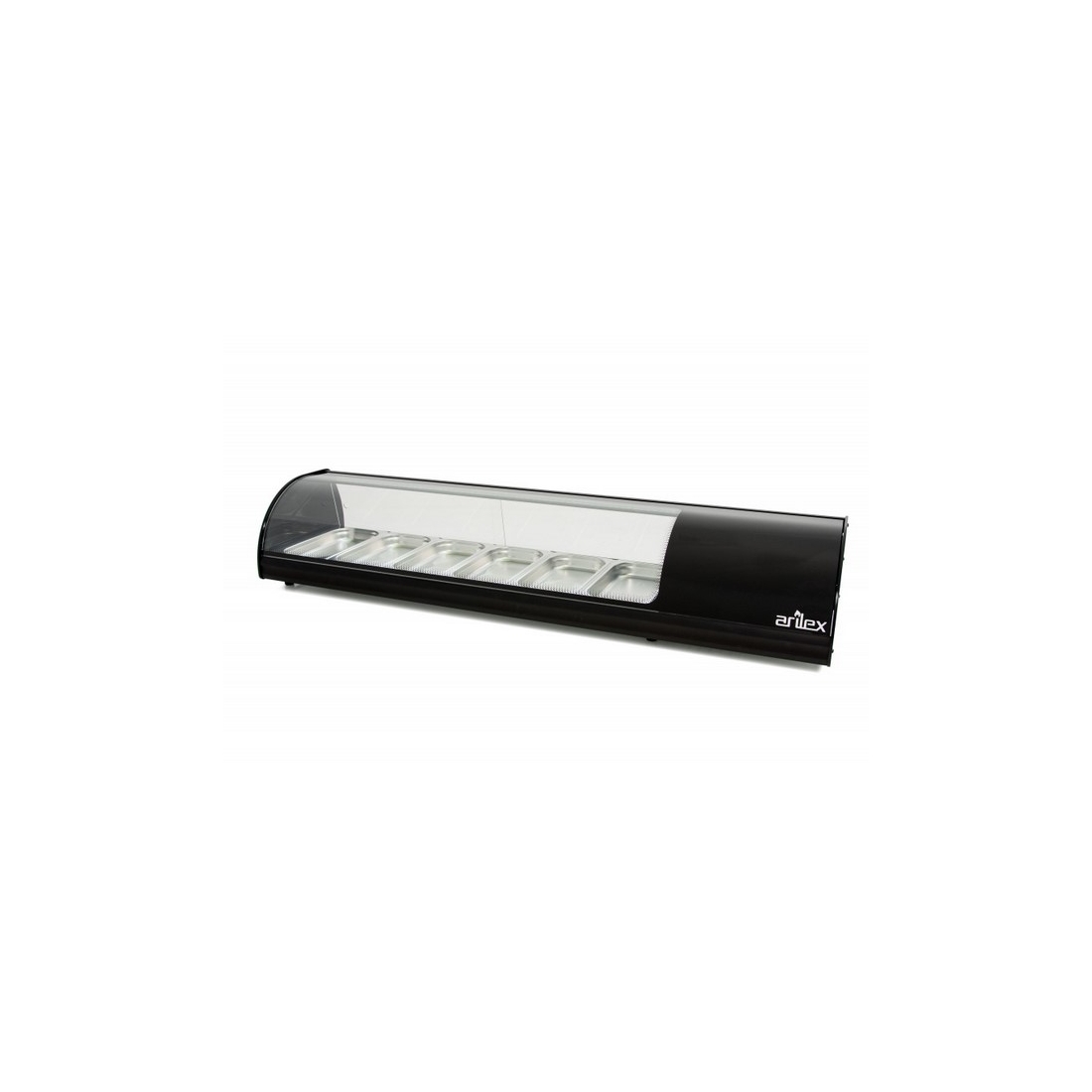 Vitrina de Tapas 6VTGNE de Arilex, con capacidad para seis cubetas GN 1/3-40 y un rango de temperatura +2 / +6ºC. Color Negro.