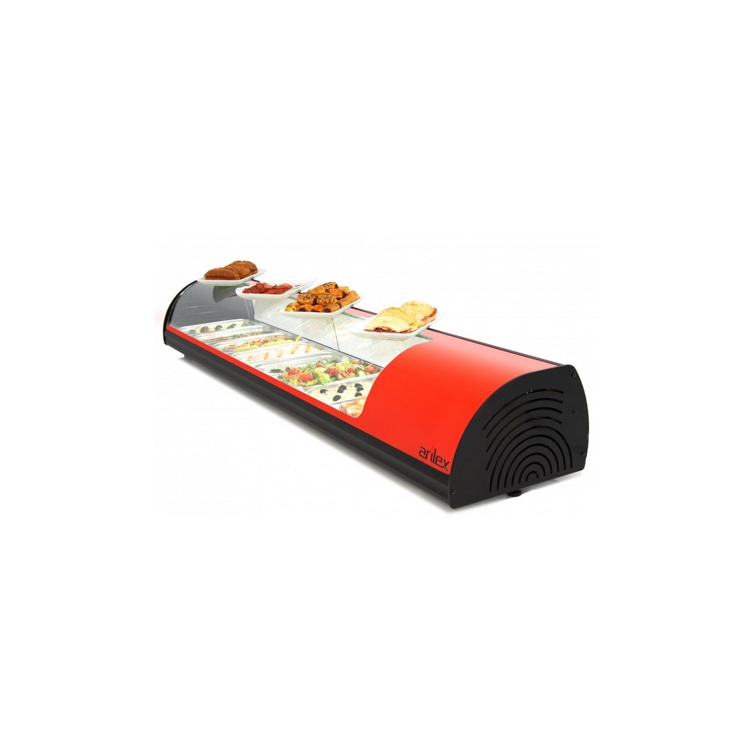 Vitrina de Tapas 8VTGRO de Arilex, con capacidad para ocho cubetas GN 1/3-40 y un rango de temperatura +2 / +6ºC. Color Rojo.