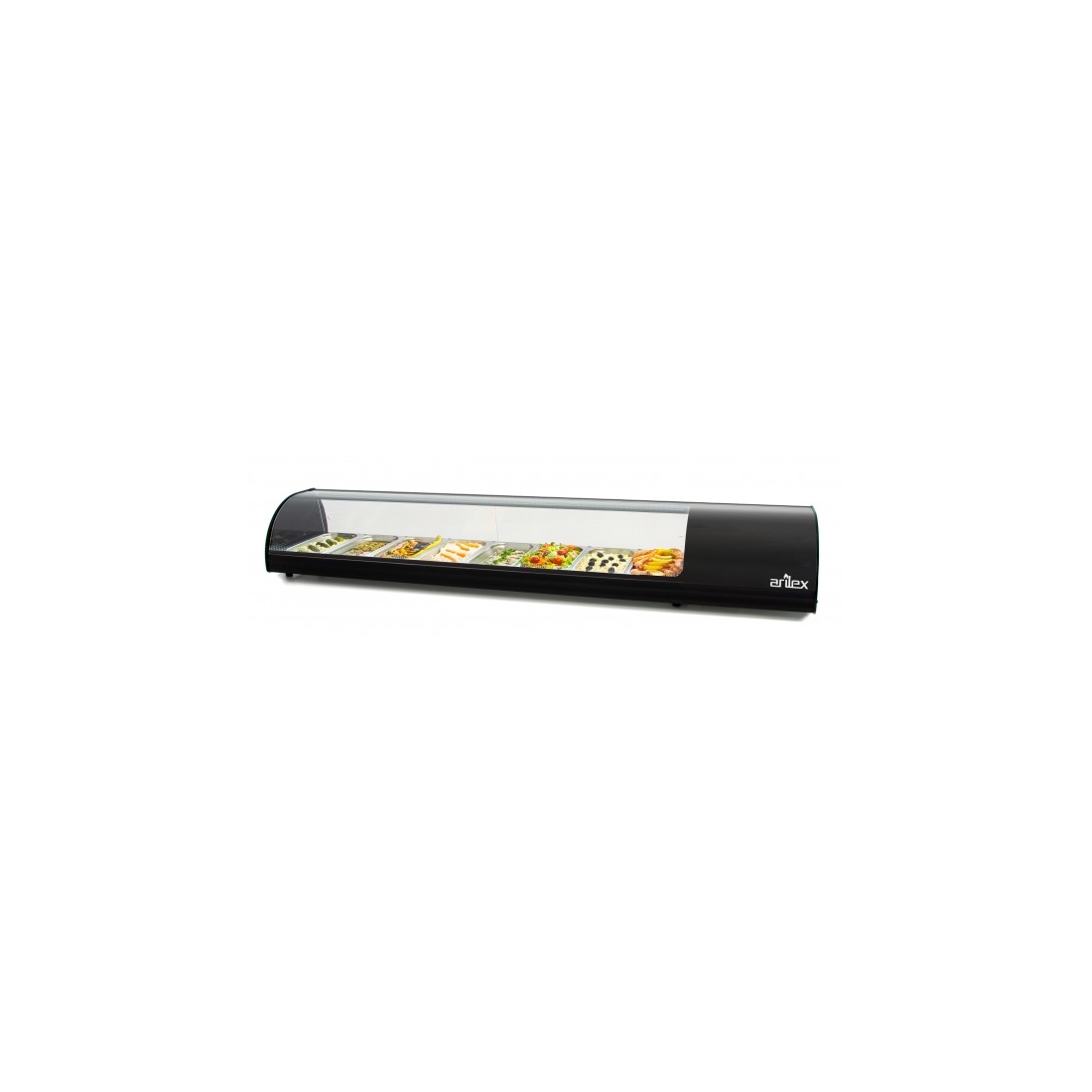 Vitrina de Tapas 8VTGNE de Arilex, con capacidad para ocho cubetas GN 1/3-40 y un rango de temperatura +2 / +6ºC. Color Negro.