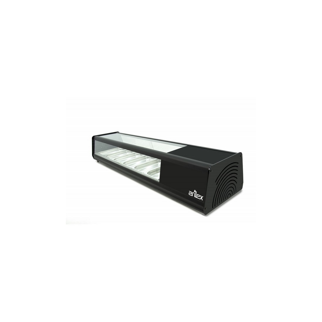 Vitrina de Tapas 4VTG de Arilex, con capacidad para cuatro cubetas GN 1/3-40 y un rango de temperatura +2 / +6ºC. Color Negro.