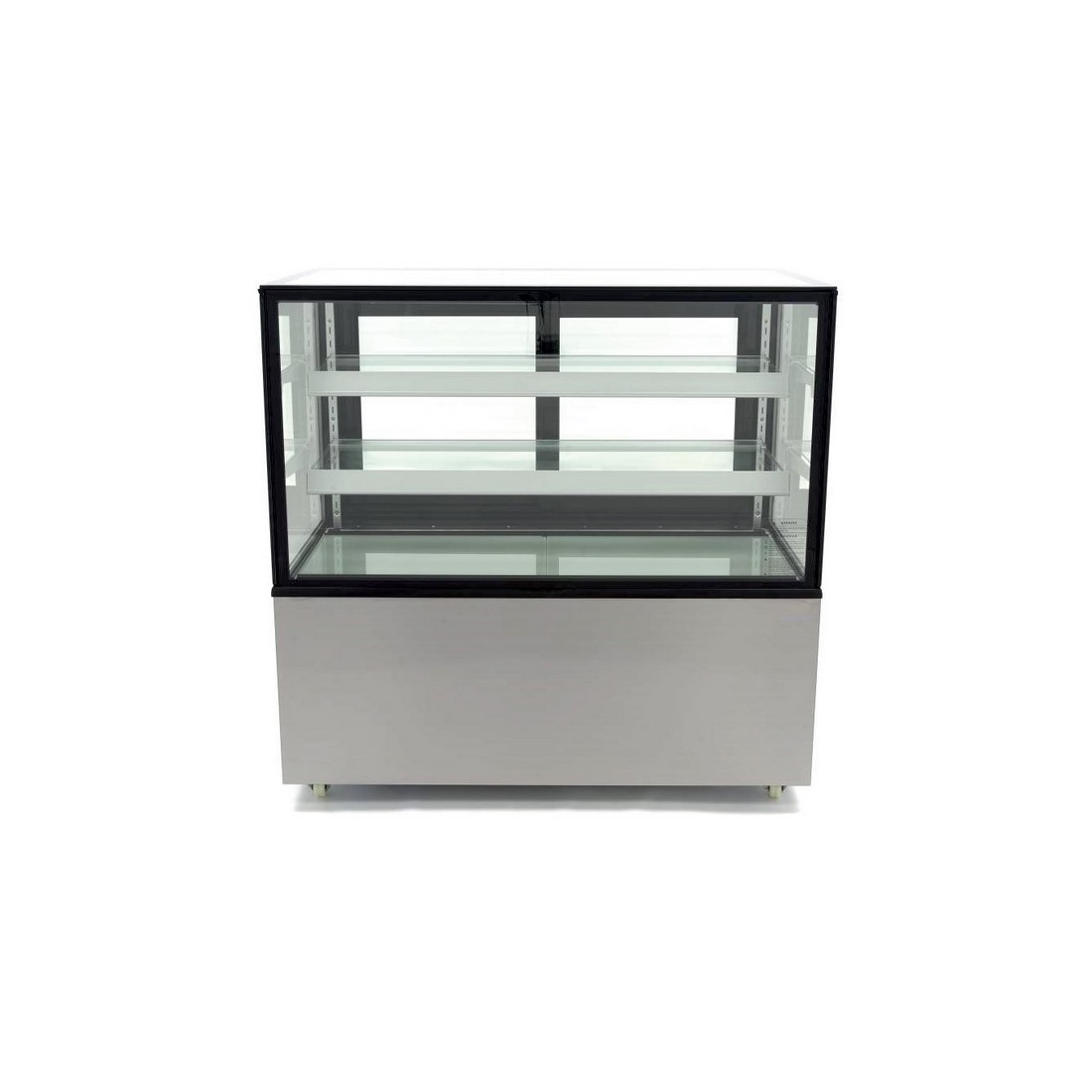 Vitrina refrigerada para pastelería con cristal recto y dos estantes. Modelo de refrigeración ventilada con 510 litros de capacidad. Sus dimensiones son: 1515 x 675 x 1215mm. Cuenta con vidrio de doble capa templado, endurecido y con sistema anti condensación.
